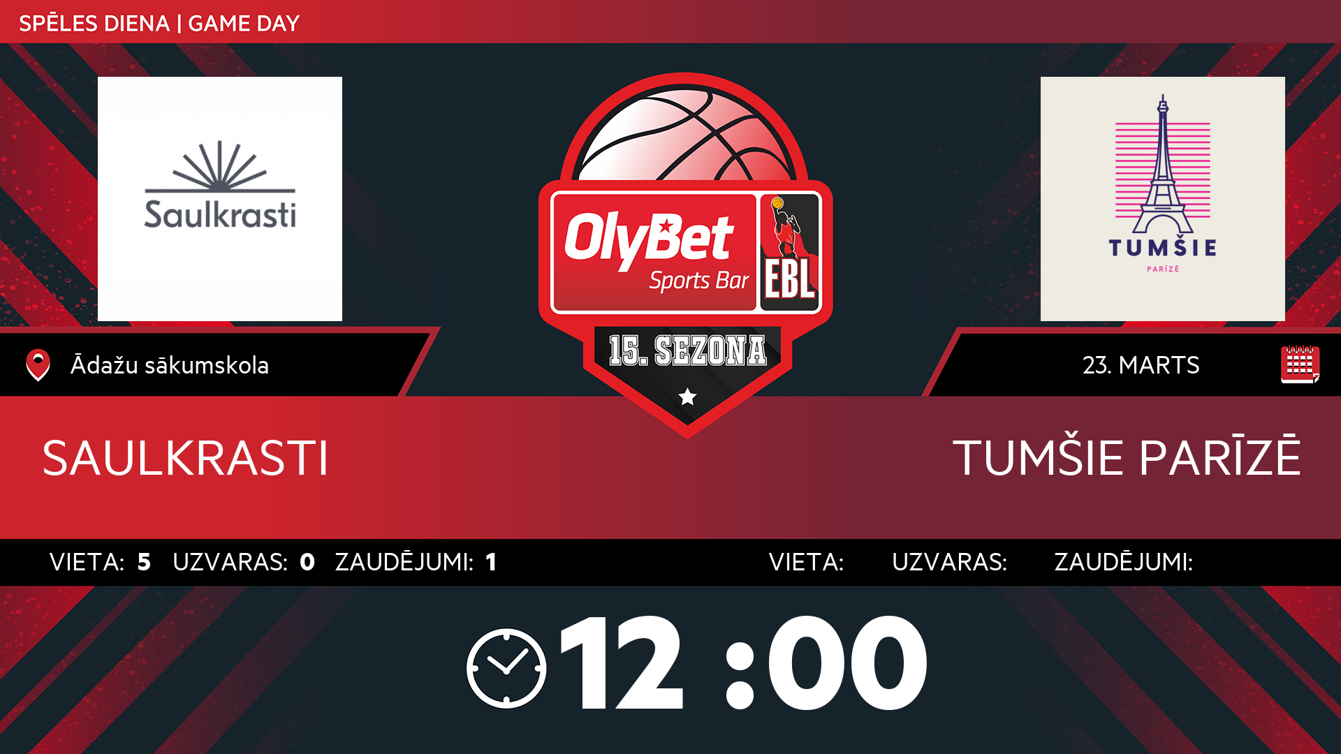 • sestdiena: 12:00