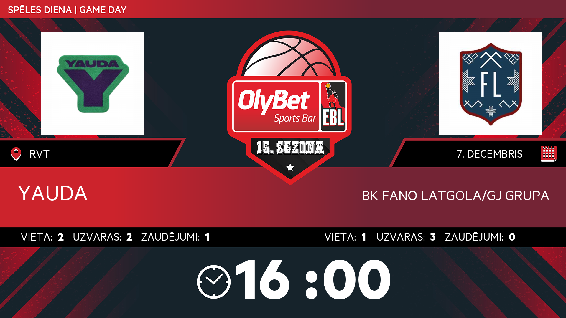 • sestdiena: 16:00
