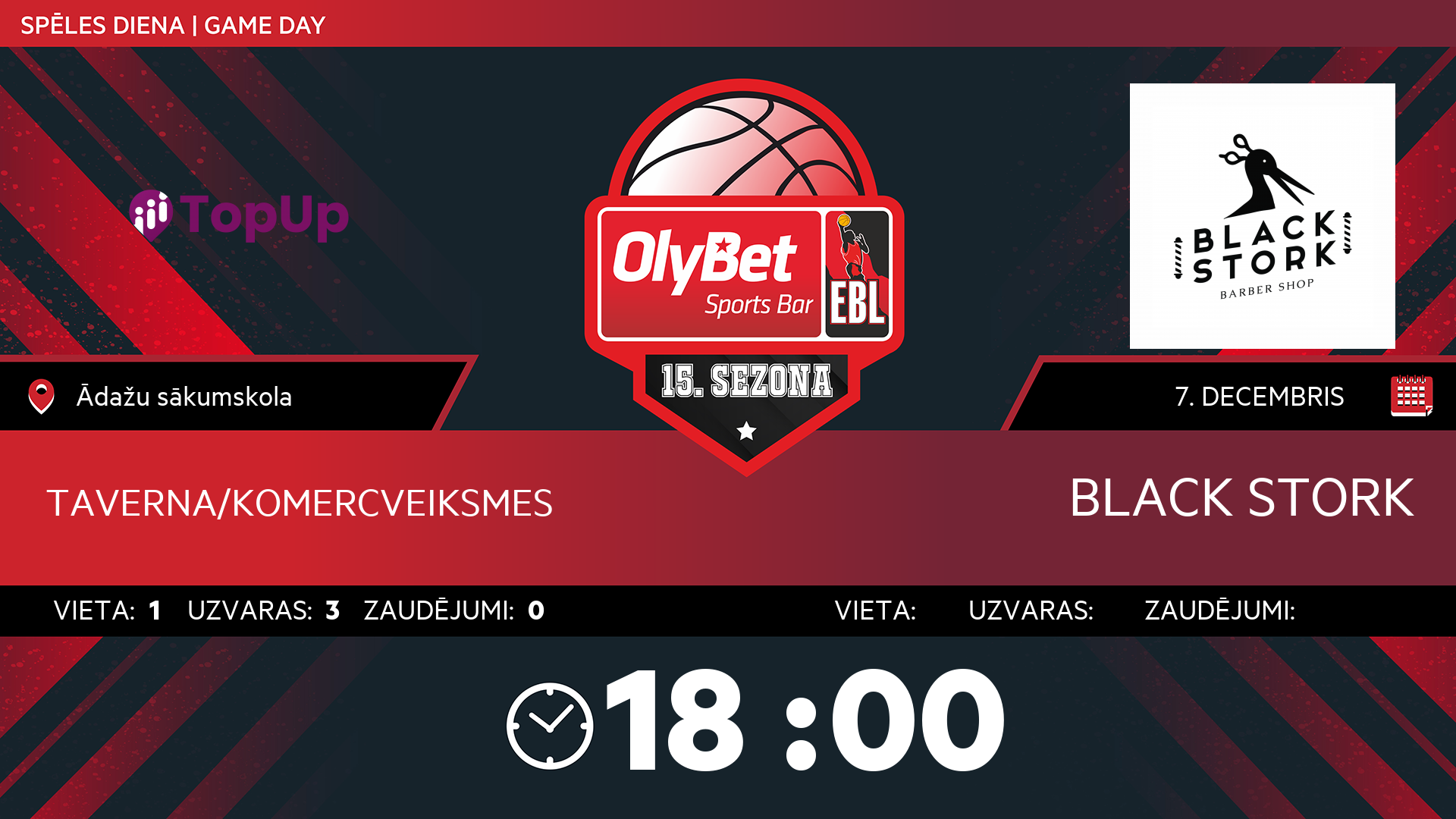 • trešdiena: 18:15