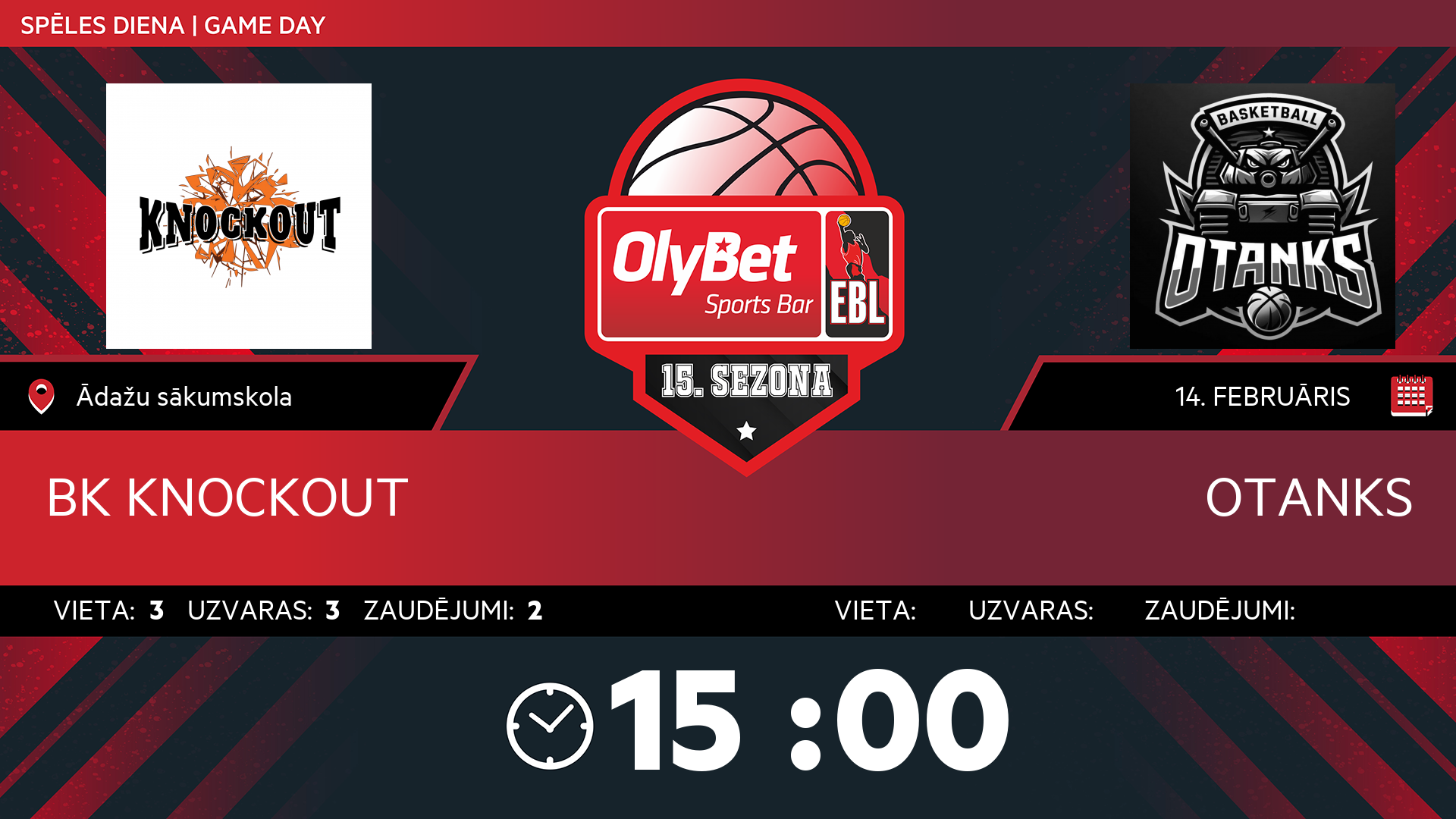• svētdiena: 15:00
