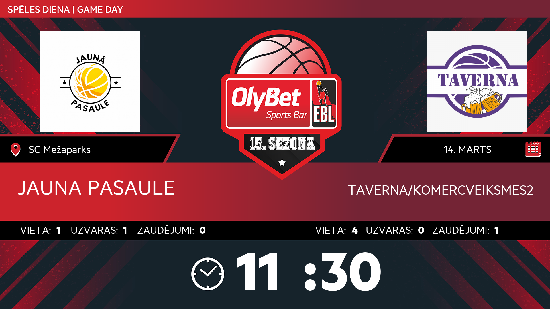 • sestdiena: 14:30