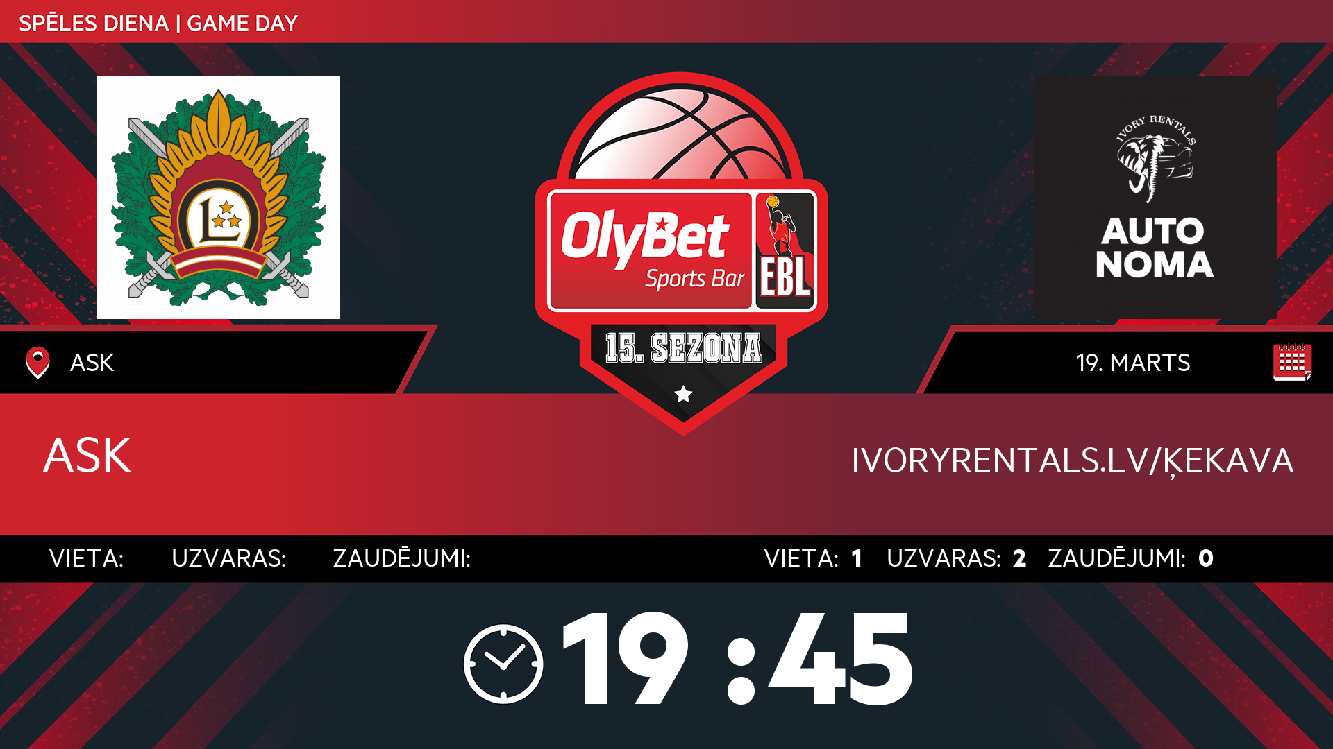 • ceturtdiena: 19:45