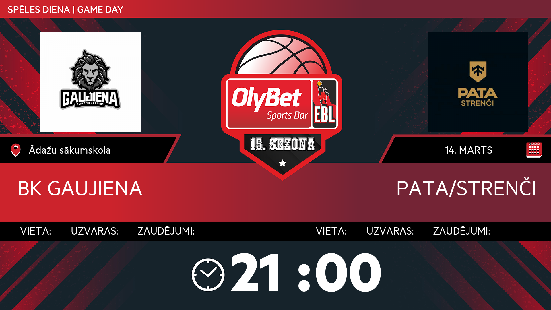 sestdiena: 21:00