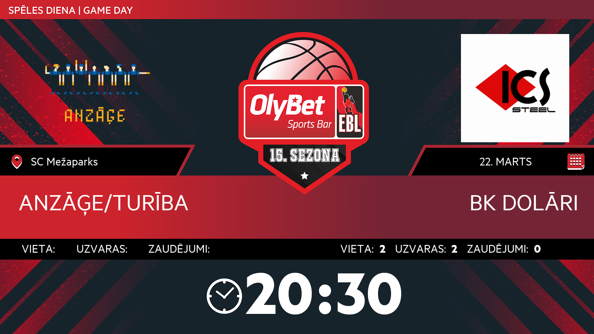 • sestdiena: 20:30