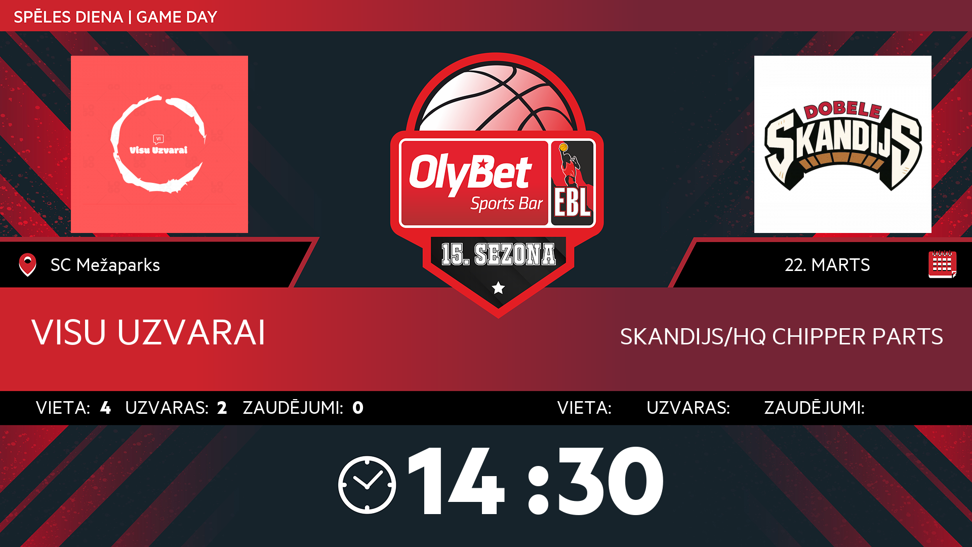 • sestdiena: 14:30