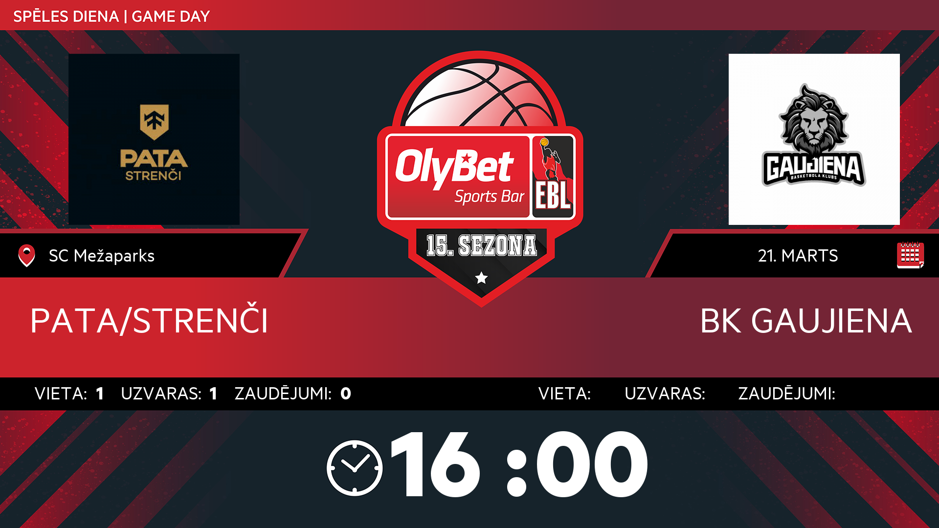 sestdiena: 16:00
