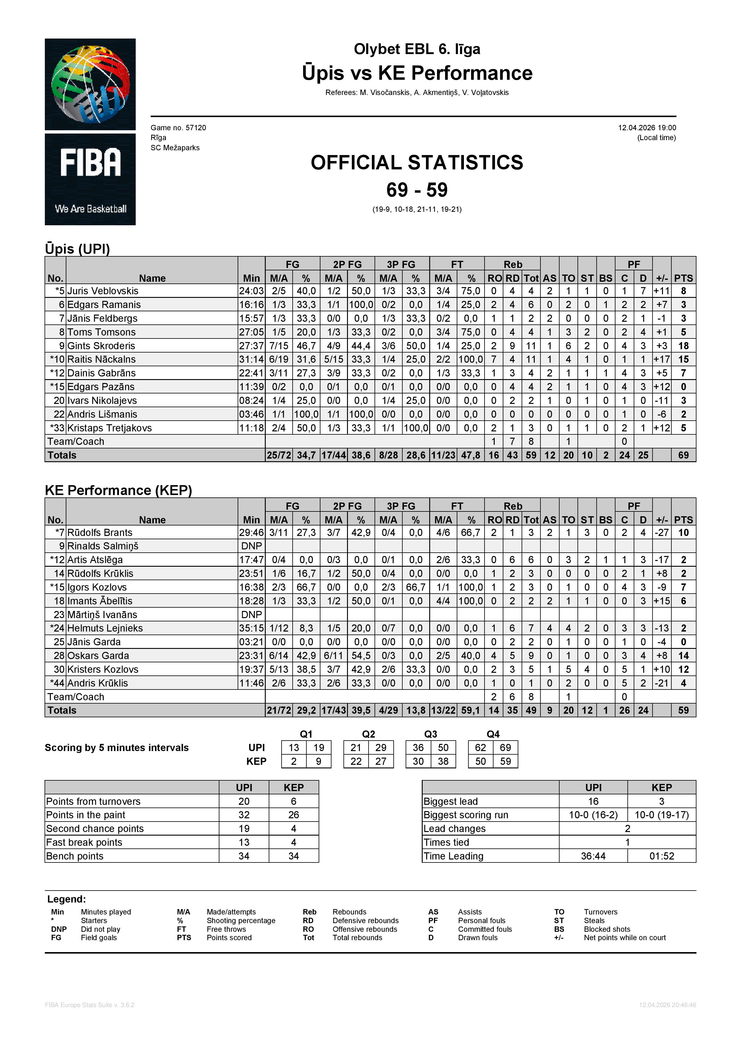 Komanda 3341 BK LVBET SCORES 84