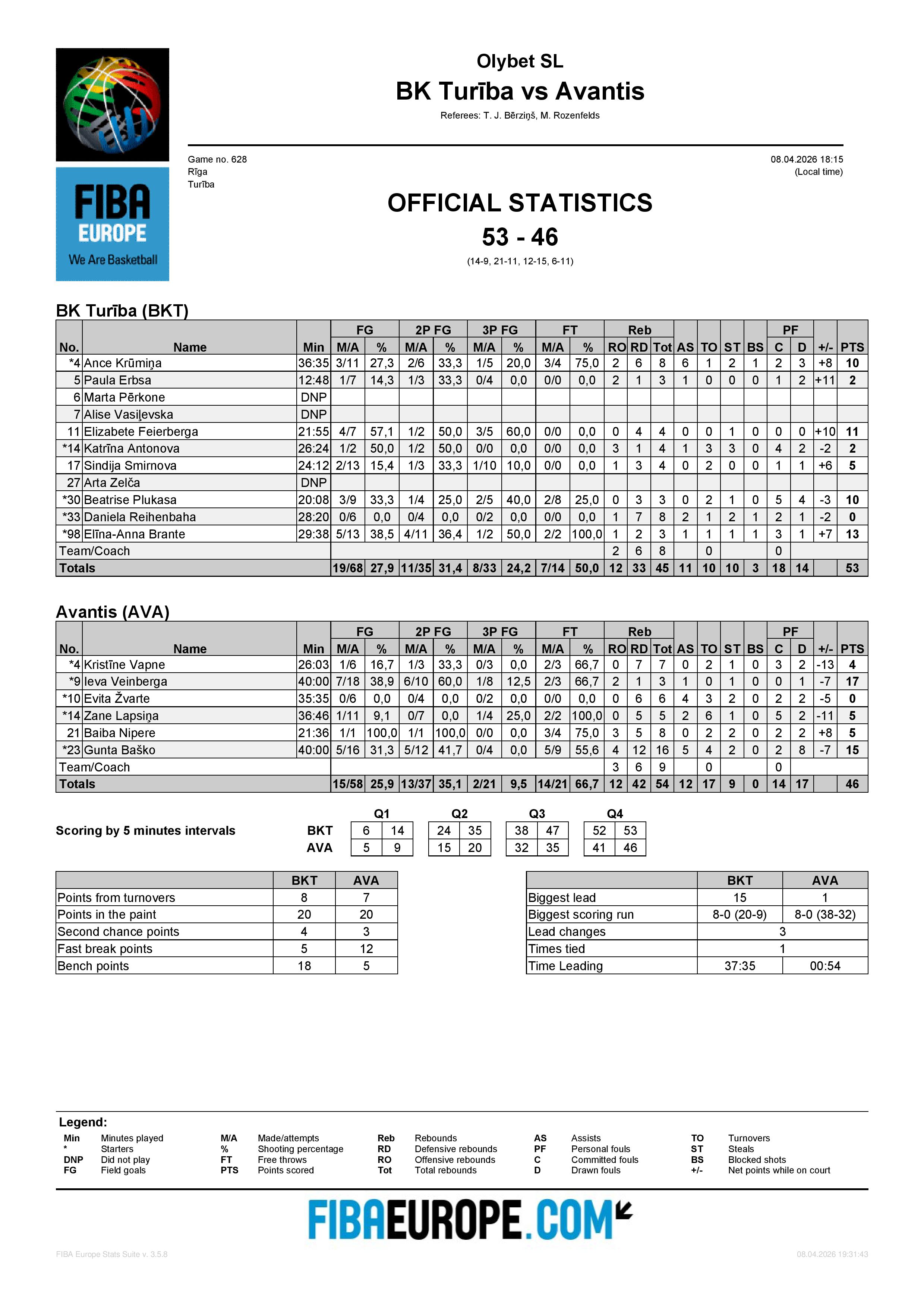 Komanda 3341 BK LVBET SCORES 84