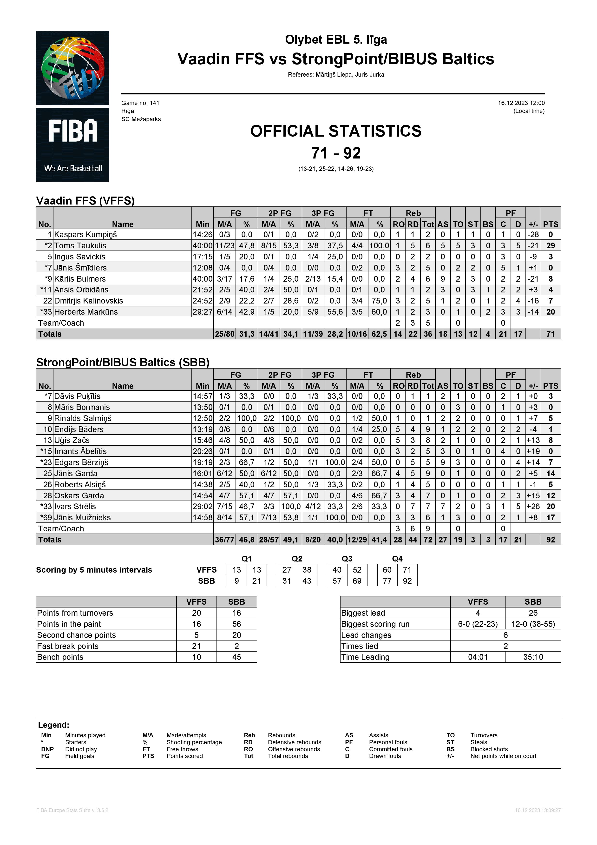Komanda 3341 BK LVBET SCORES 84